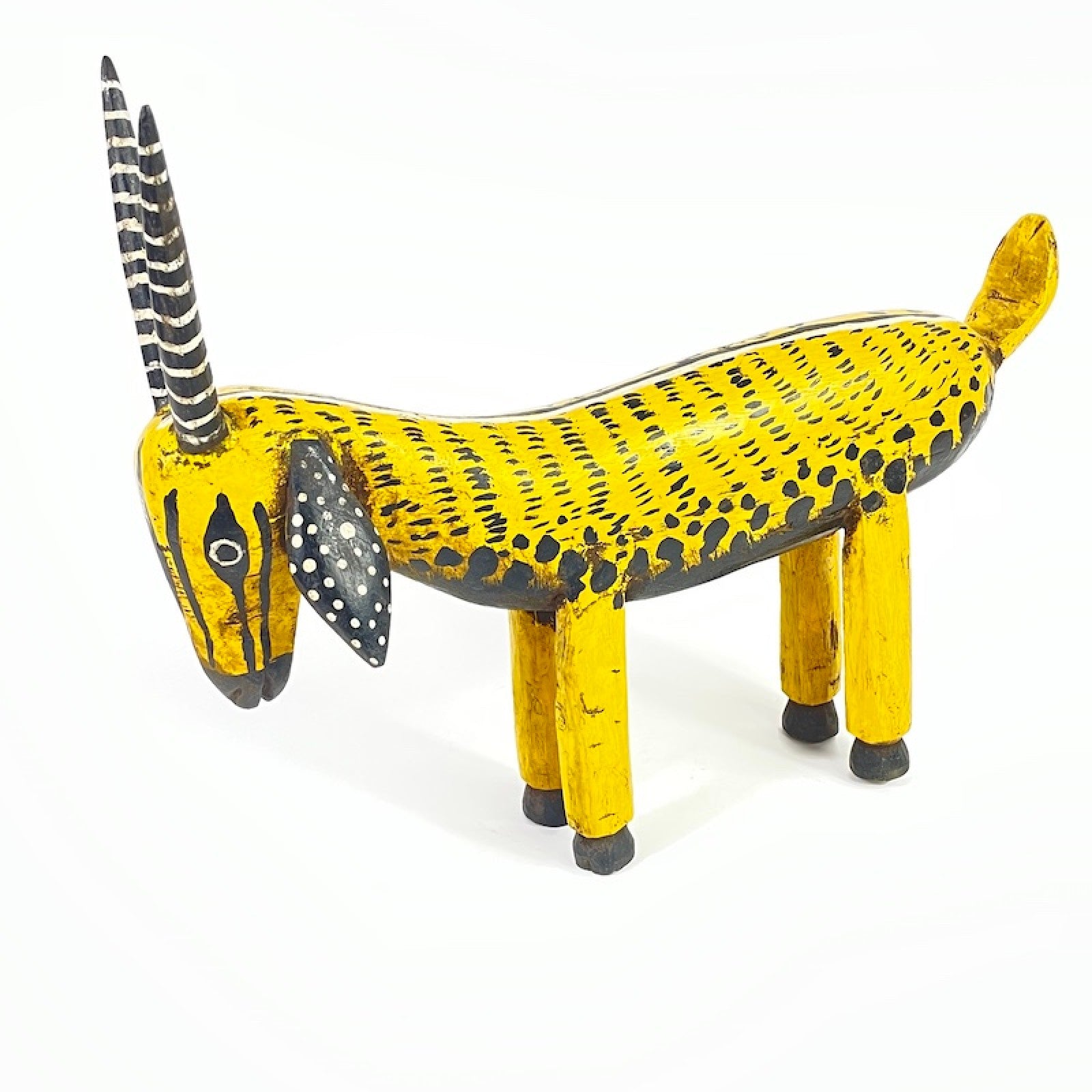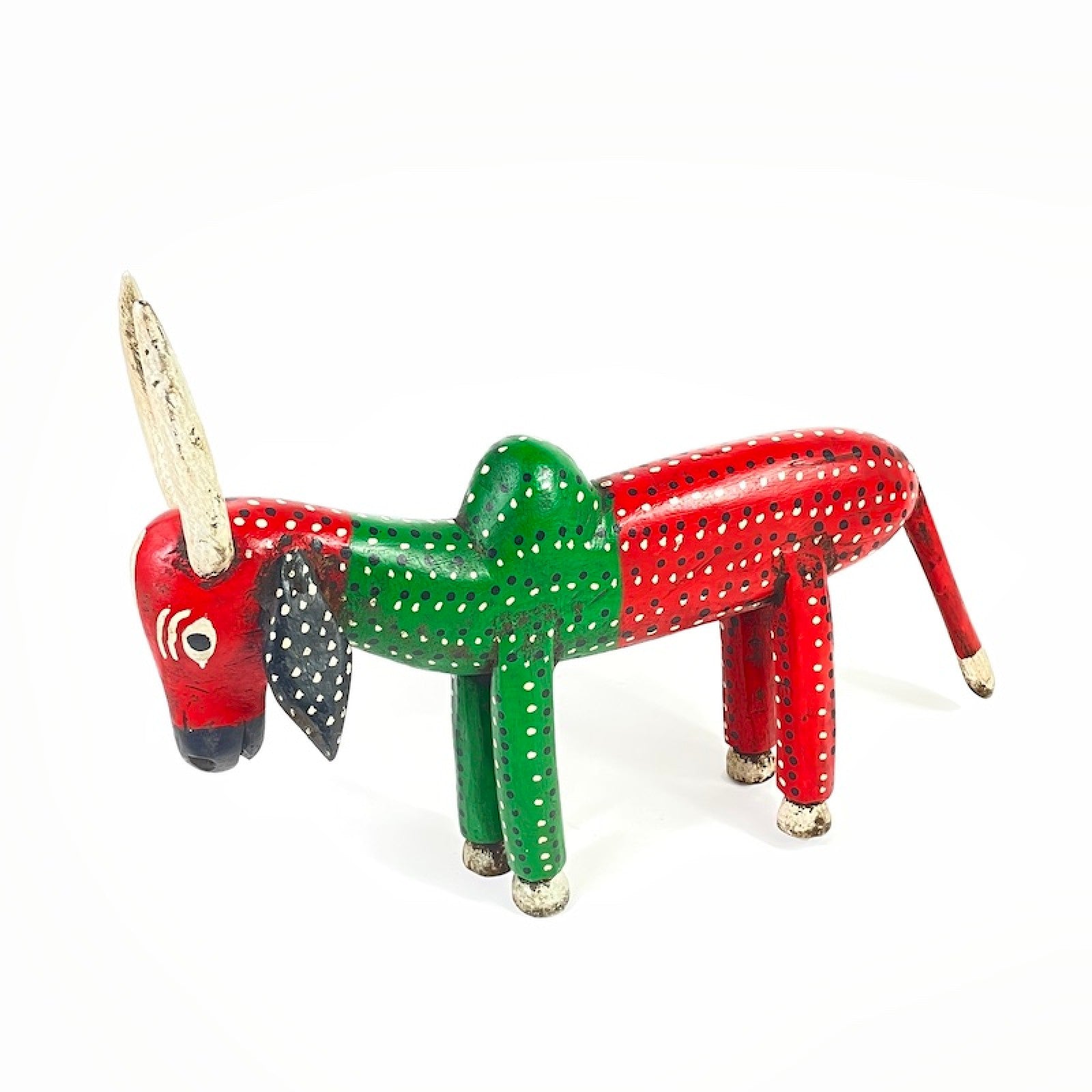 OM: Fina och färglada trädjur tillverkade av Bozo-folket i Mali i Västafrika. Djur och andra dockor av den här typen användes för att förstärka myter och skapelseberättelser. Det finns en stor mängd olika karaktär och legendariska figurer bland skulpterade dockorna. Idag används dessa figurer till att lära barn traditionell folklore vid festivaler.