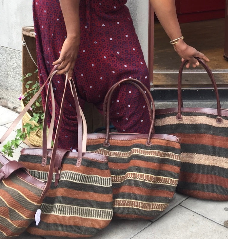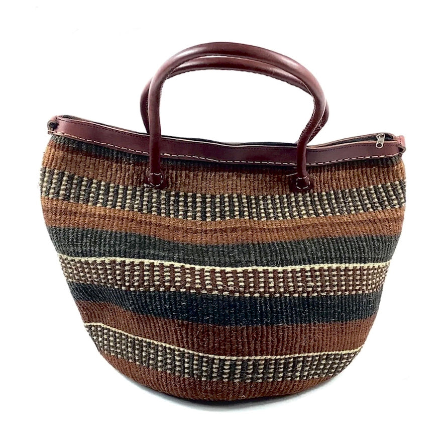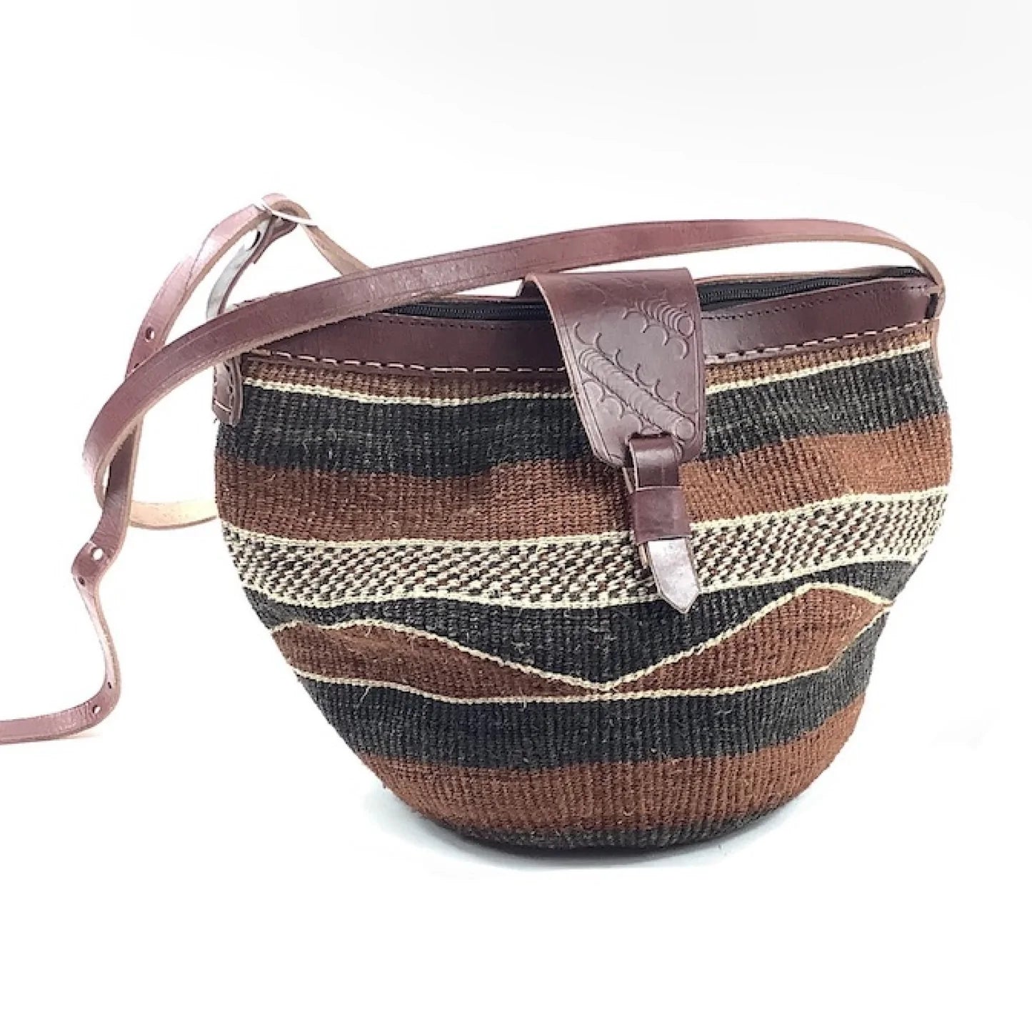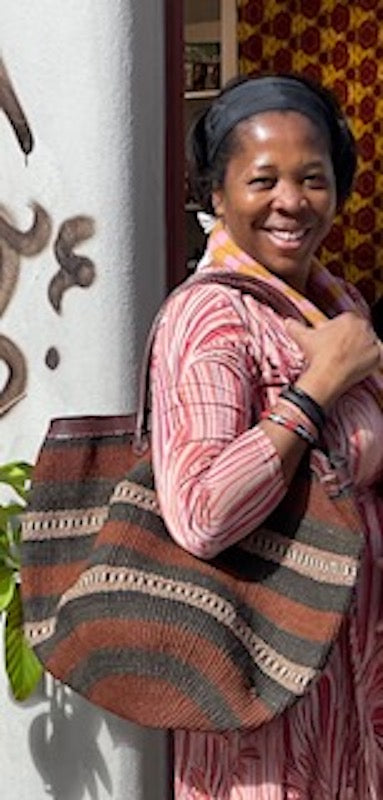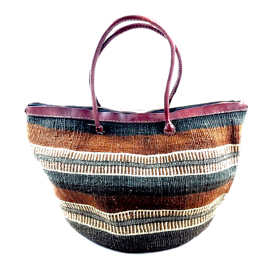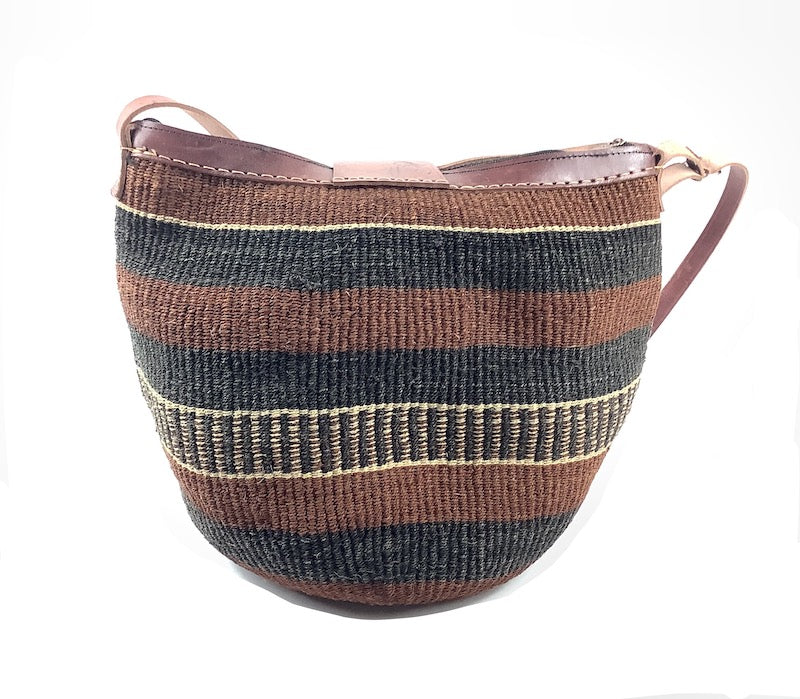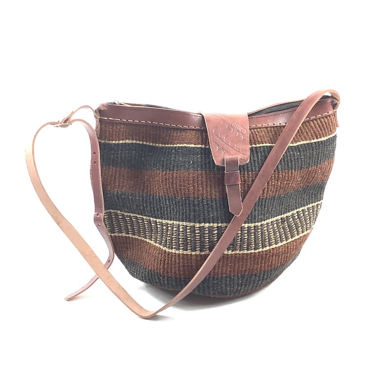 Handvävda Baobab axelväska från Nduberi kvinnorgrupper i Kikuyu county Kenya. Gjorda av hållbar baobab-trädbark. Dessa väskor är vävda i ett traditionellt, unikt randigt mönster. Eftersom alla väskor är olika i sitt unika mönster är väskan du får nära det mönster från bilden.
