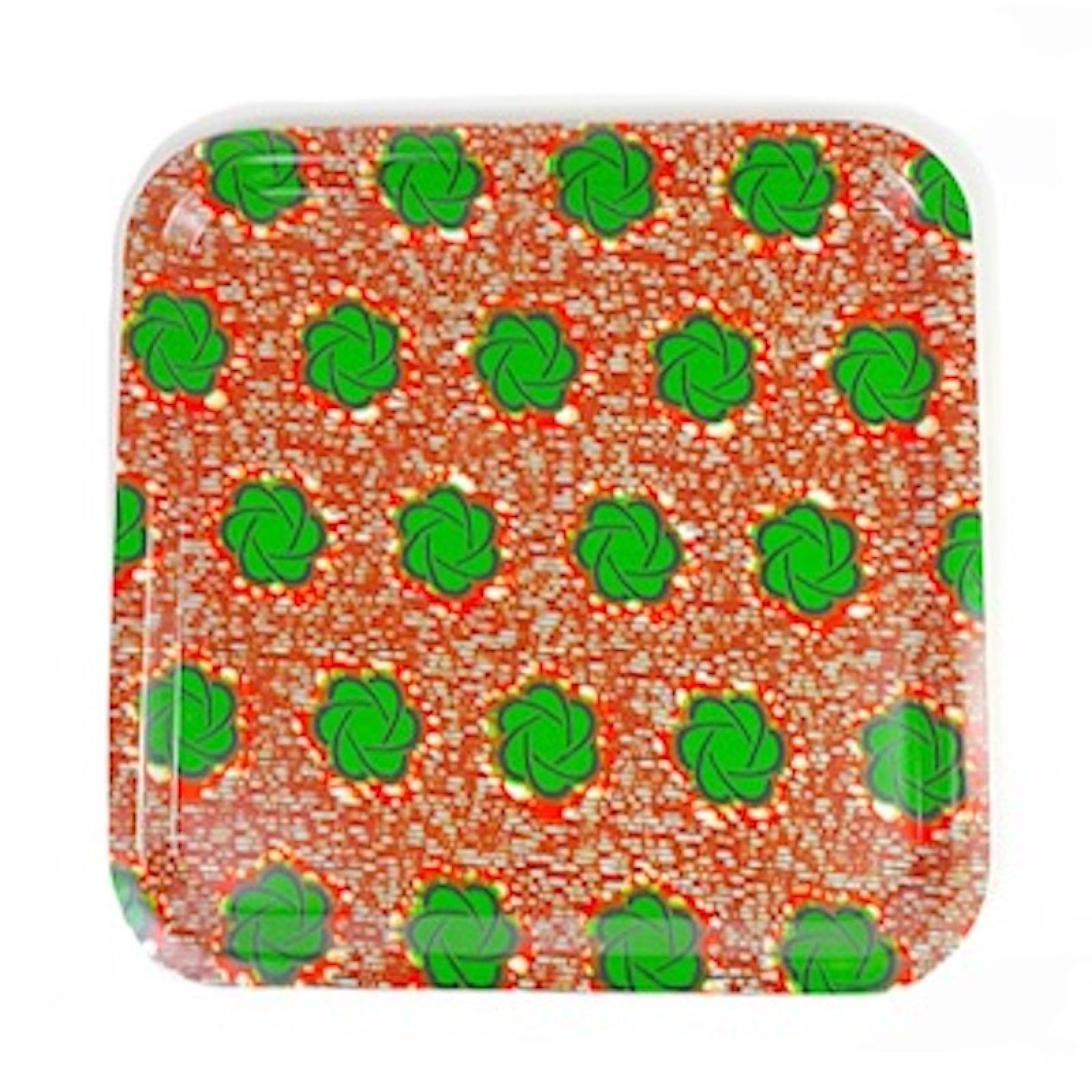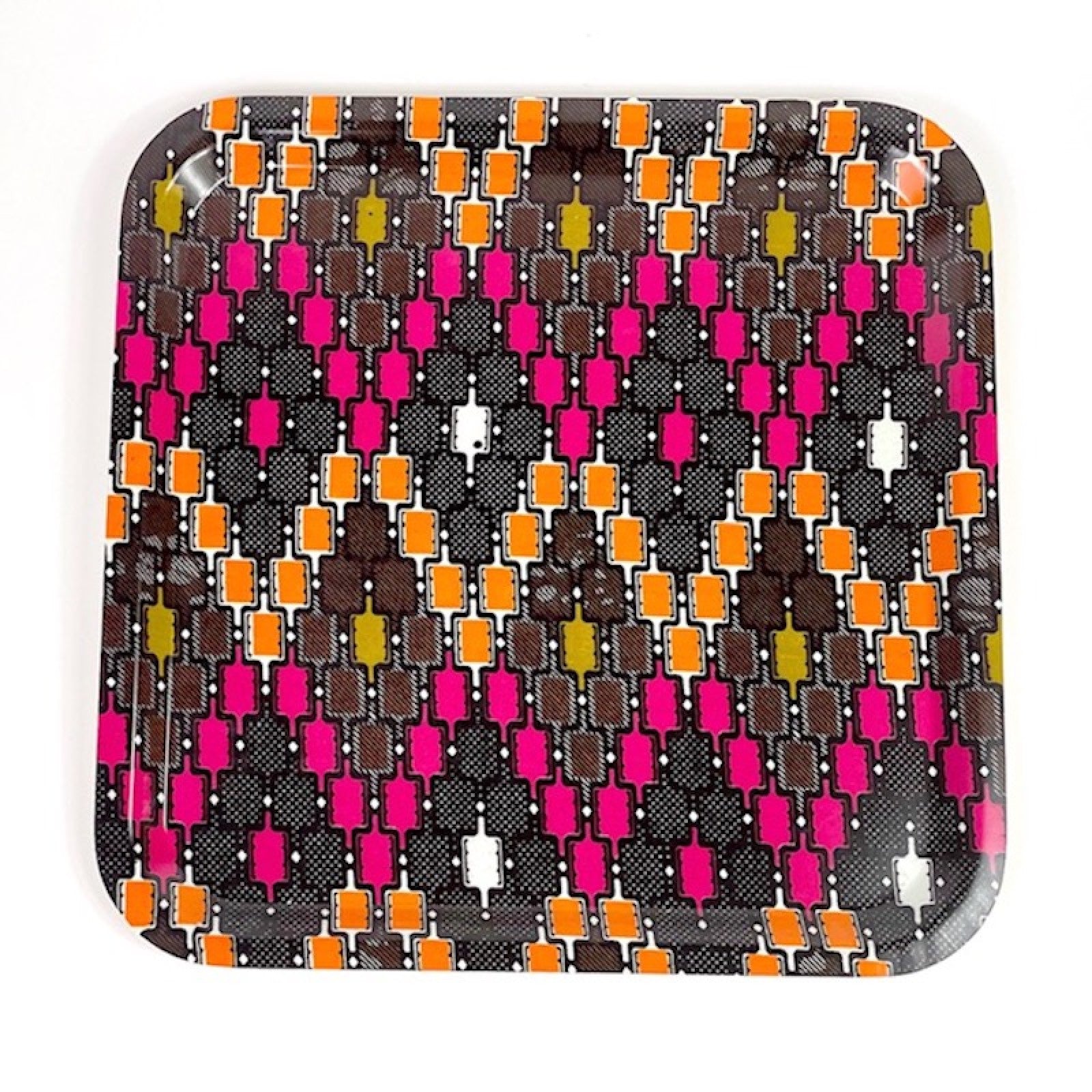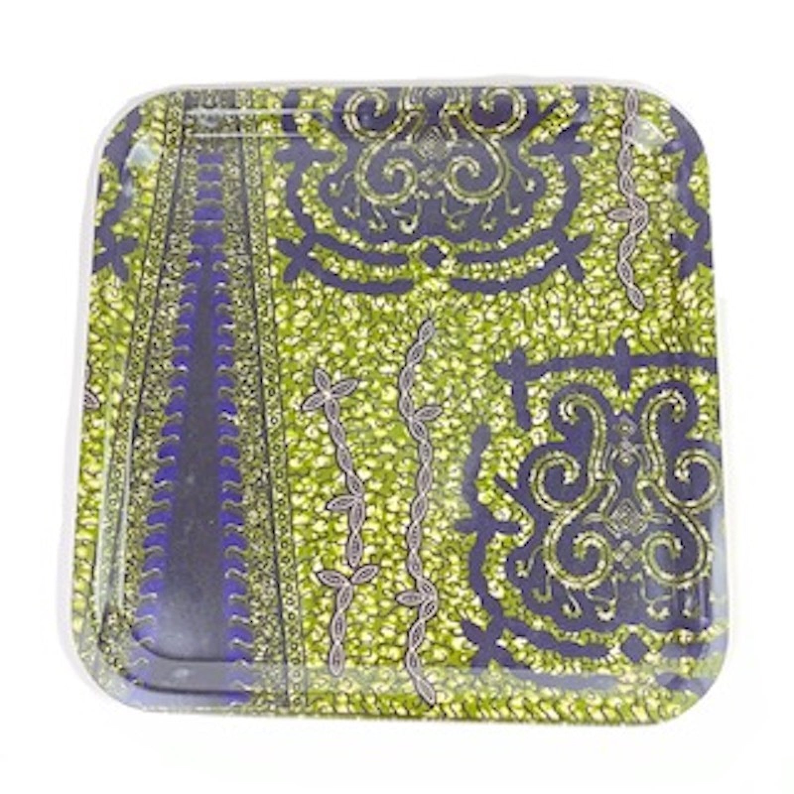 Våra brickor är handgjorda av afrikanska tryckta tyger från Ghana och Nigeria som lamineras och maskinpressas på björkträ från Sverige. Mönsterplacering kan variera från bricka till bricka vilket gör var och en av dem speciell och unik.