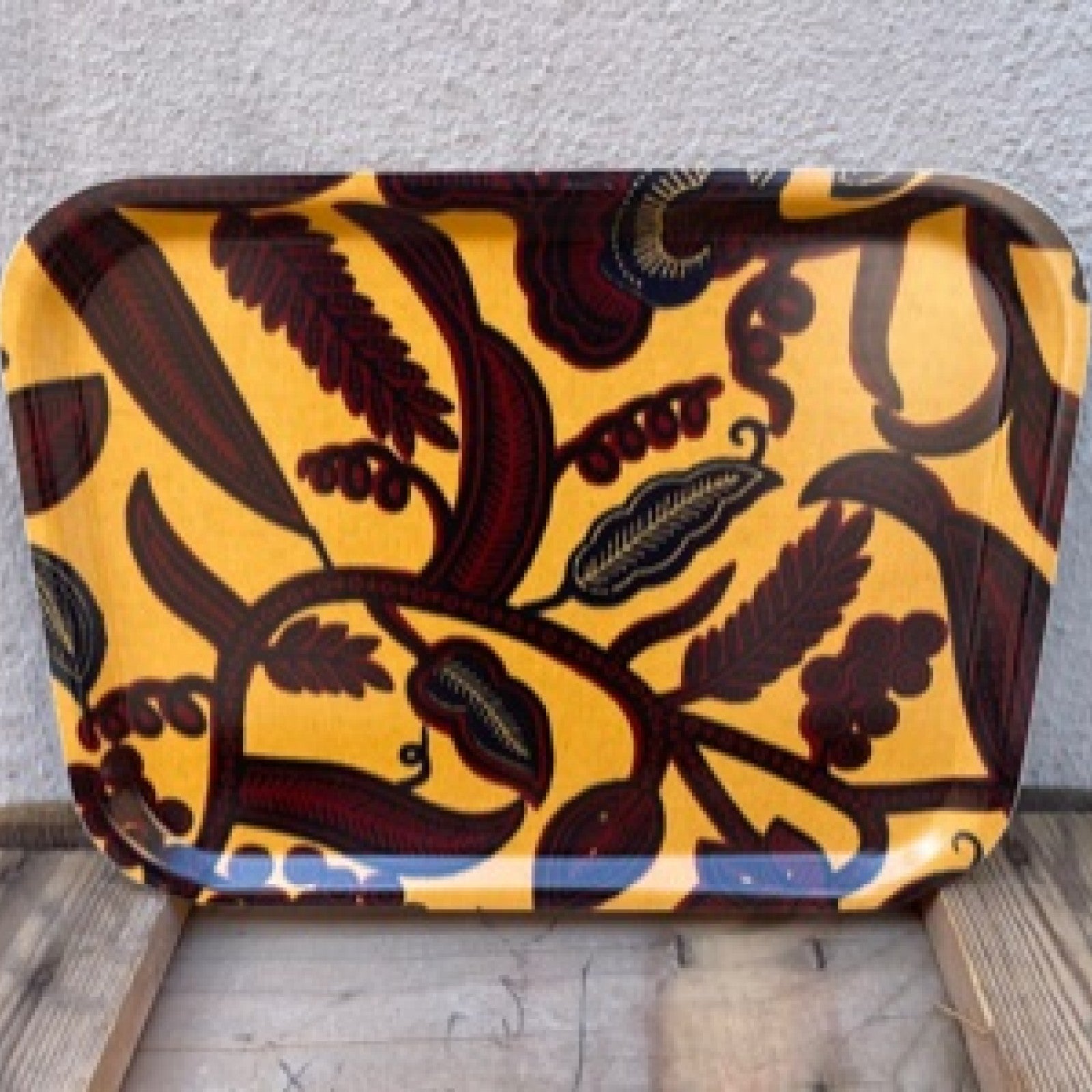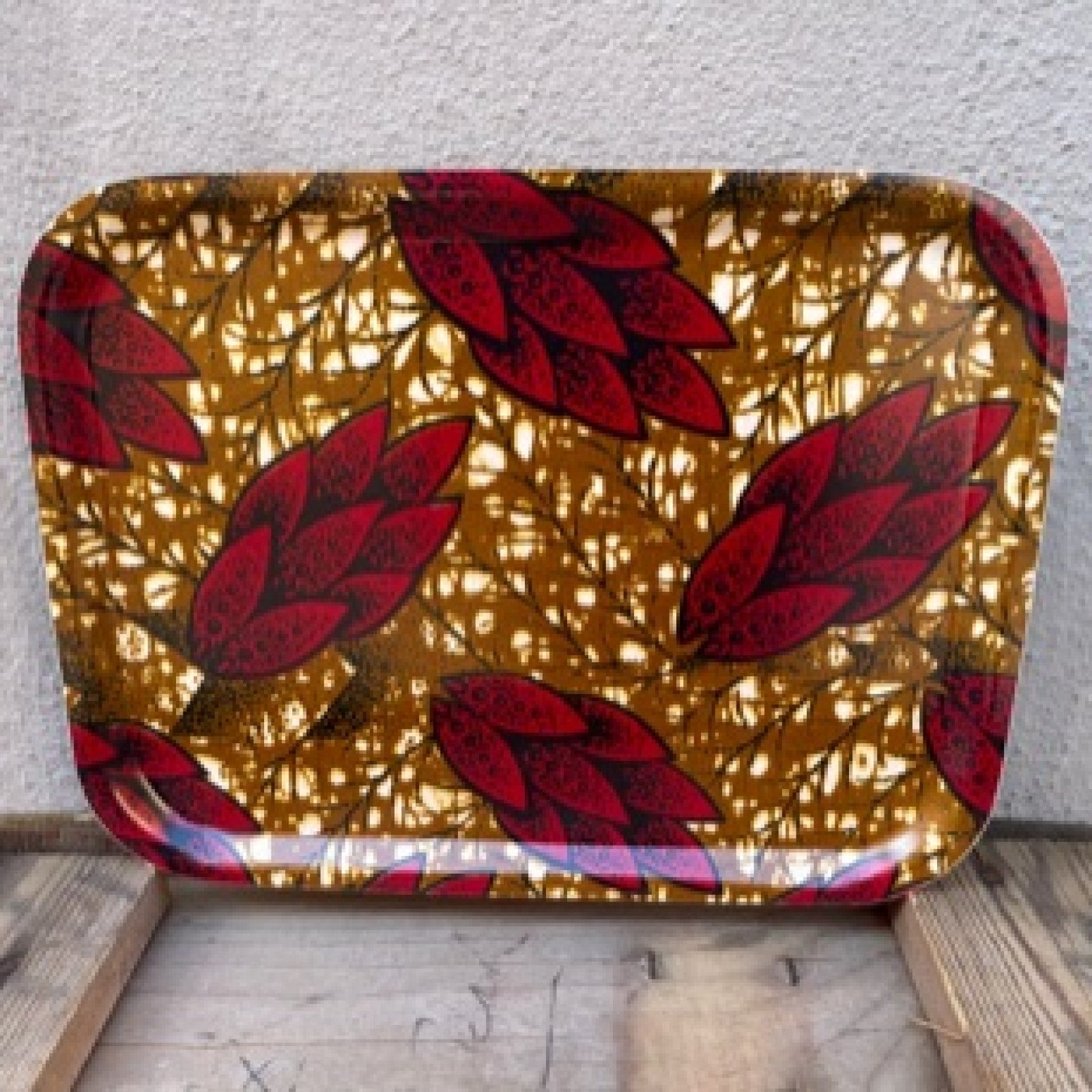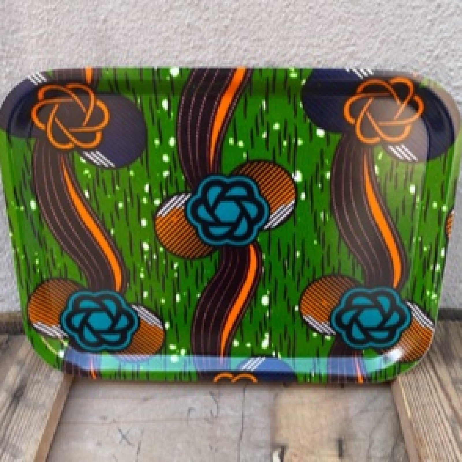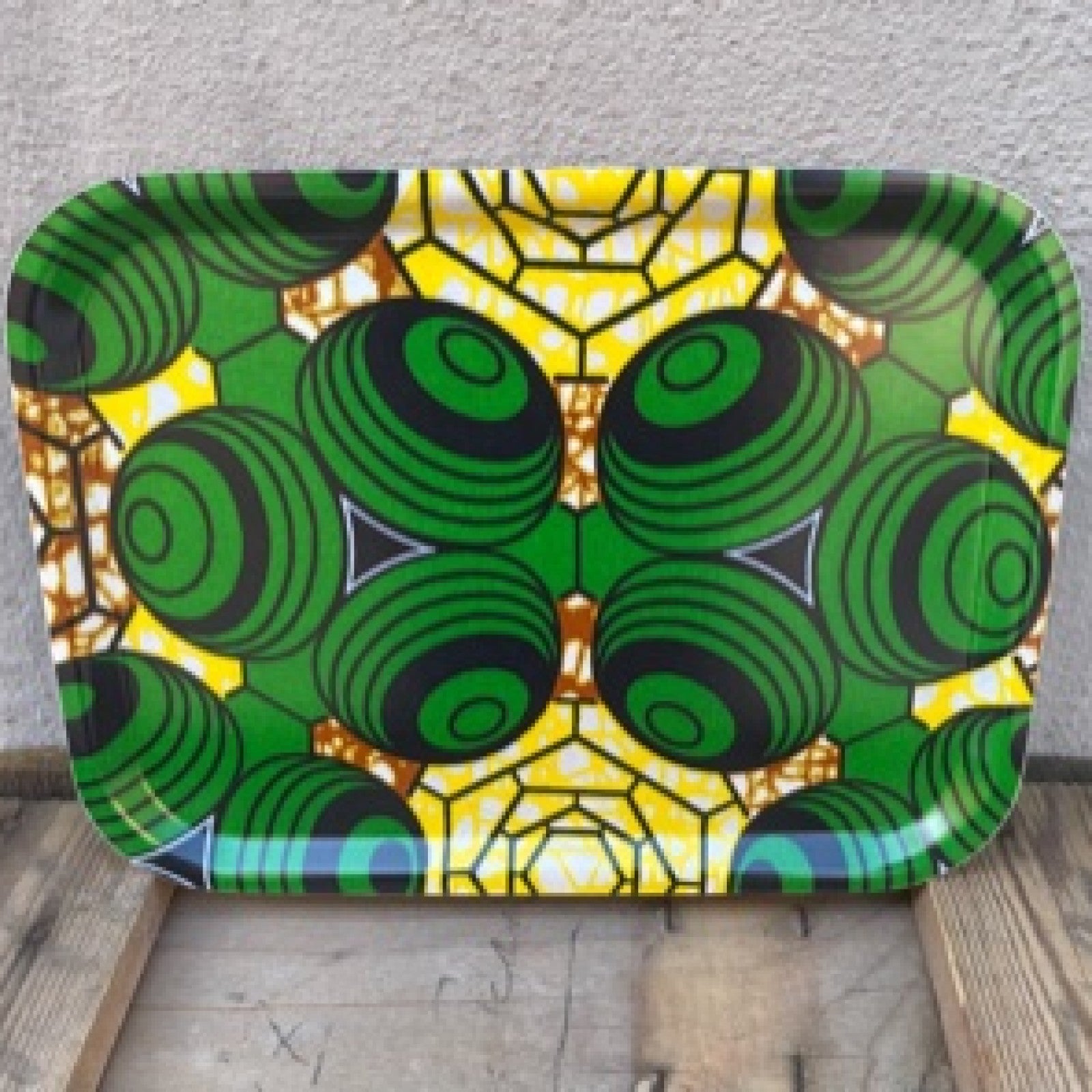 Våra brickor är handgjorda av afrikanska tryckta tyger från Ghana och Nigeria som lamineras och maskinpressas på björkträ från Sverige. Mönsterplacering kan variera från bricka till bricka vilket gör var och en av dem speciell och unik.