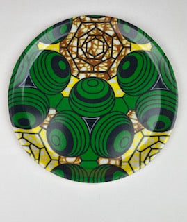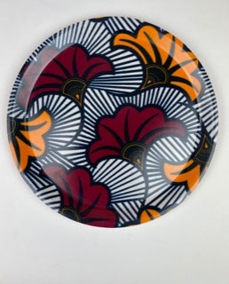 Våra brickor är handgjorda av afrikanska tryckta tyger från Ghana och Nigeria som lamineras och maskinpressas på björkträ från Sverige. Mönsterplacering kan variera från bricka till bricka vilket gör var och en av dem speciell och unik.