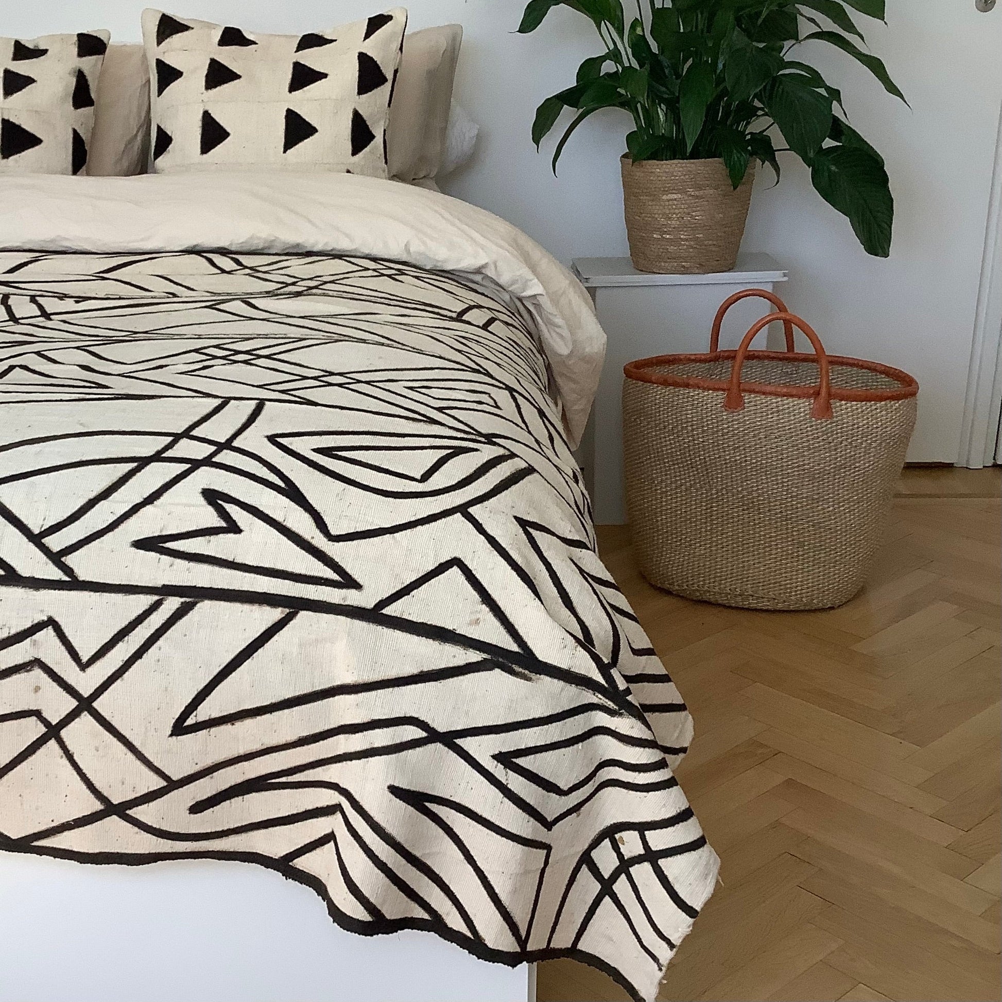 OM: Bògòlanfini, som även kallas “Mud Cloth”, är en handgjord textil med en viktig plats i Malis kultur. Handspunnen bomullstyg hand färgas med fermenterad lera på följande vis: i steg 1 blötläggs i ett färgbad av blad från “n’gallama” träd (Anogeissus leiocarpa) som har mosats och kokats. Detta första steg ger tyget en gul färg. När tyget fått soltorka målas önskat mönster med en bit metall eller trä i Steg 2; Vad som används nu är en speciell järnrik lera som samlats in från flodbäddar och jäst i lerkrukor i upp till ett år. Det är inte själva leran och som ger duken sina förger, utan en kemisk reaktion som uppkommer då den jästa leran kommer i kontakt med den n’gallama-färgade duken. Steg 3 i tillverkningsprocessen är i praktik steg två upprepat; traditionella bogolan mönster är många och avancerade och kan där med kräva att färg appliceras i flera omgångar. I det sista 4:de steget förhöjs kontrasten mellan dukens omålade och målade delar genom att avlägsna det gula n'gallama färgämnet från dukens omålade områden med hjälp av tvål eller blekmedel. Kvarstår gör en färdig duk i ett karraktäristiskt svarta, vita eller bruna mönster, lika beständigt som vackert.
