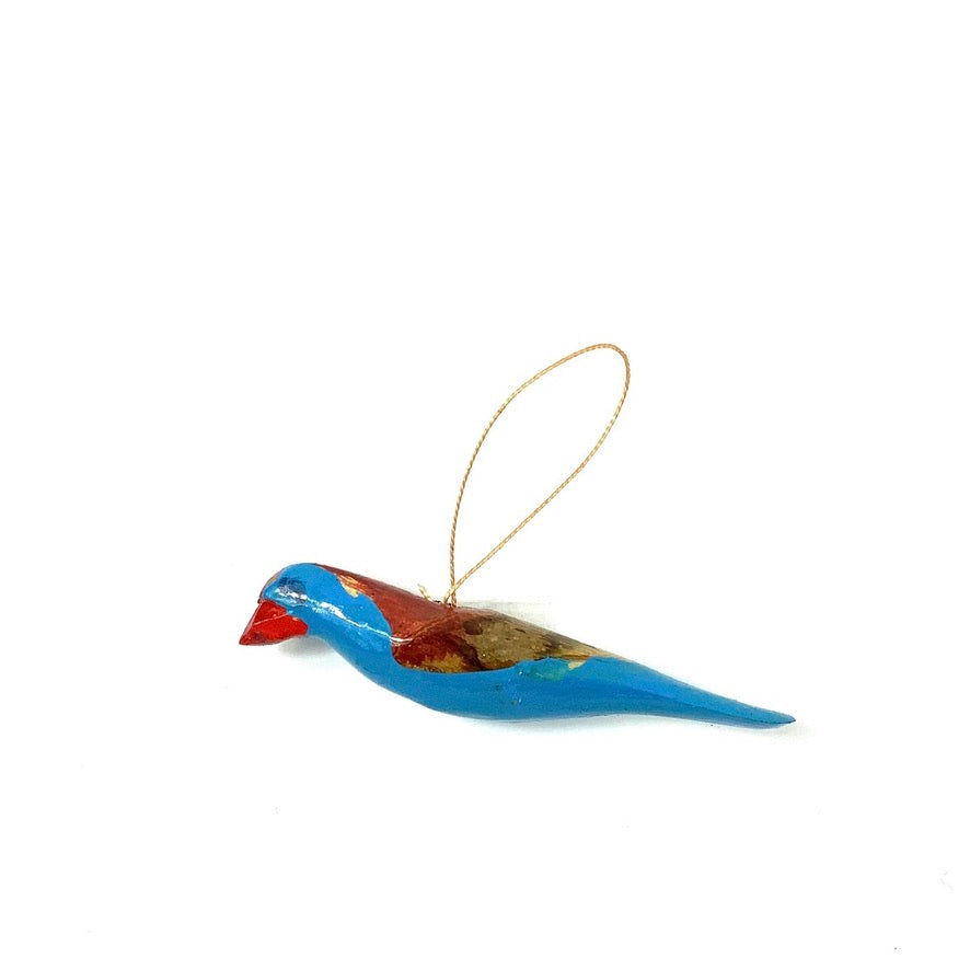 OM: Små hand snidade fågar av basal trä -ett träslag känt för sin lätta vikt- tillverkade av konsthantverkaren John Nganga från South Eastern County i Nairobi. Fåglarna målas för hand och är alla lite olika. De har en trådögla för upphängning. Köp flera, de är så fina tillsammans!