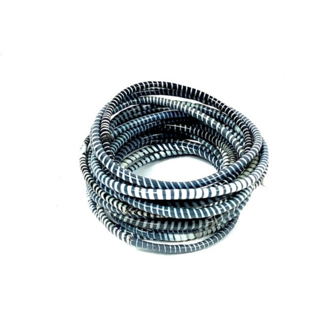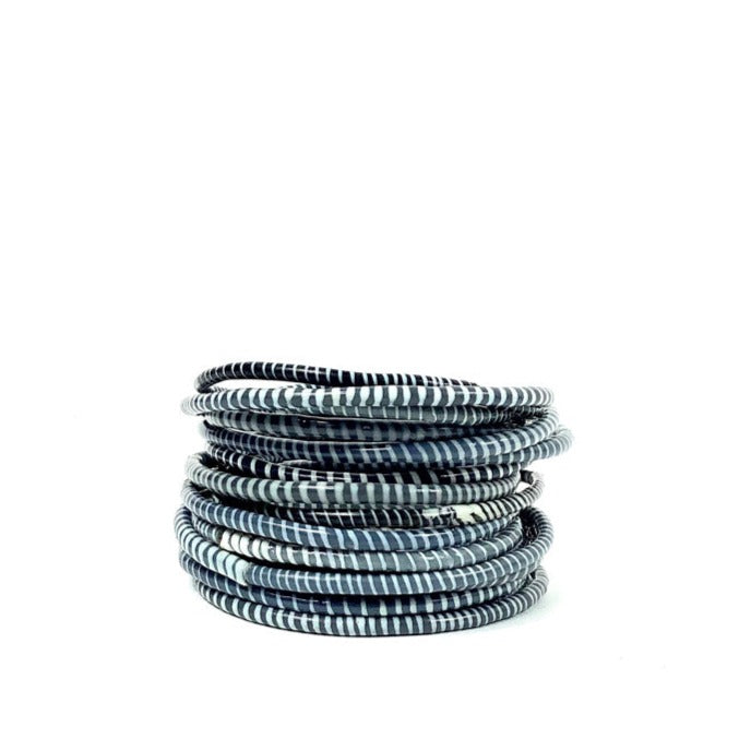 Dessa lekfulla och färgglada armband är tillverkade av återvunnen flip-flop från Mali. Varje armband är unikt och bär med sig en egen historia av återvinning och kreativitet. Armbanden är perfekta för både barn och vuxna och ger en trendig och färgstark touch till dina outfits. De är särskilt populära bland de som är unga i själen, och flera kan staplas tillsammans på armen (eller varför inte ankeln?) för en stilfull och eklektisk look.