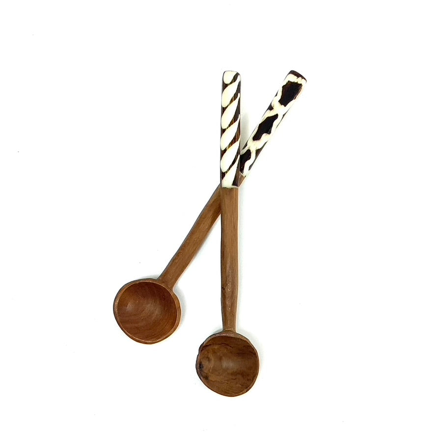 Lång kaffemåt av olivträ från Kenya. Besticken har snidats för hand.