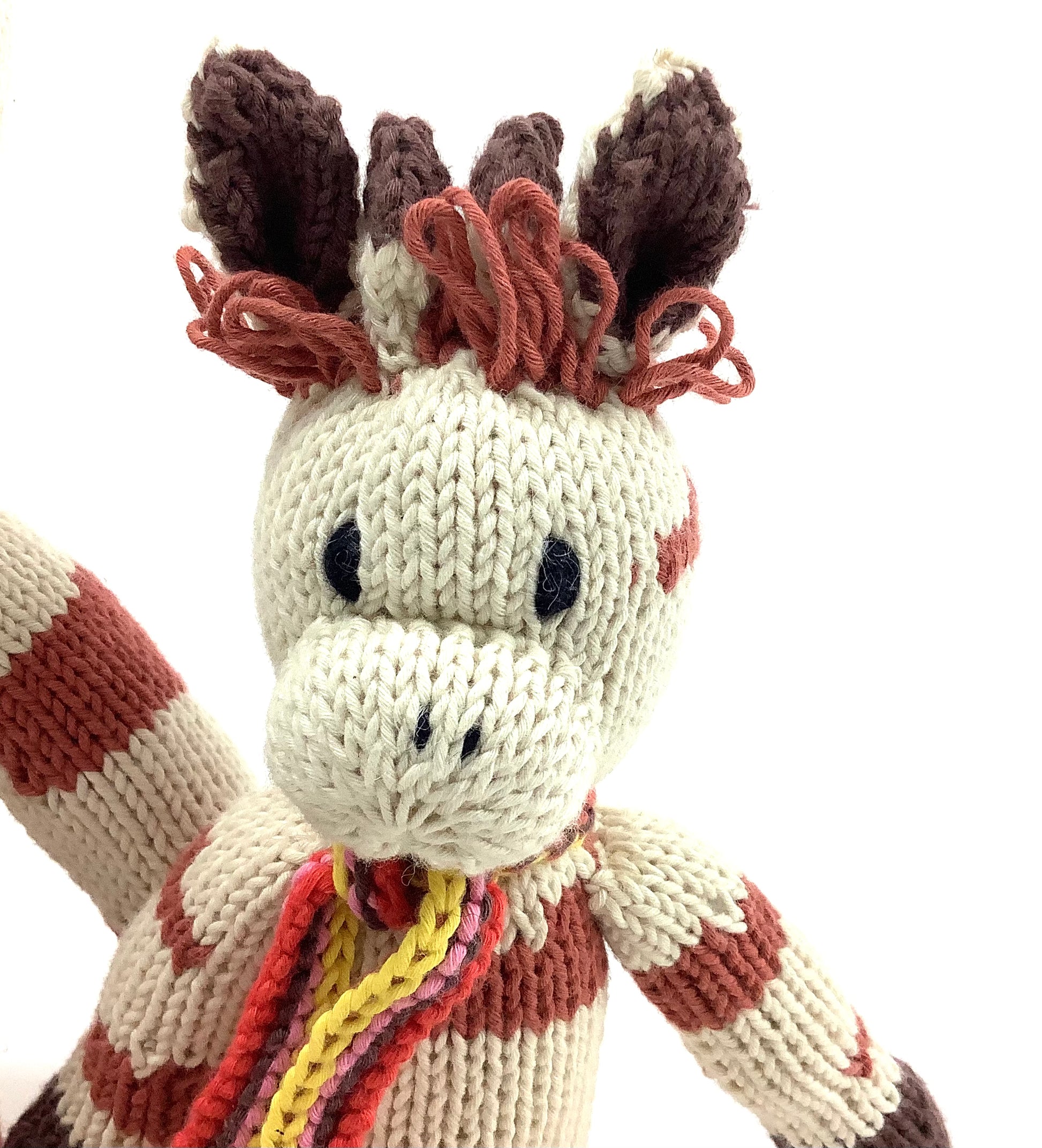 OM: Handstickat mjukisdjur i form av en charmig giraff, från "Kenana women's group" i Rift Valley provinsen i Kenya. Detta är en Fair-Trade-organisation som startats för att kvinnor på landsbygden ska kunna tjäna ett levebröd med hjälp av sin skicklighet i att spinna och sticka. Genom att köpa ett av dessa djur bidrar du till stolthet och framgång för varje individuell kvinna och hennes familj liksom till hela samhällets utveckling.