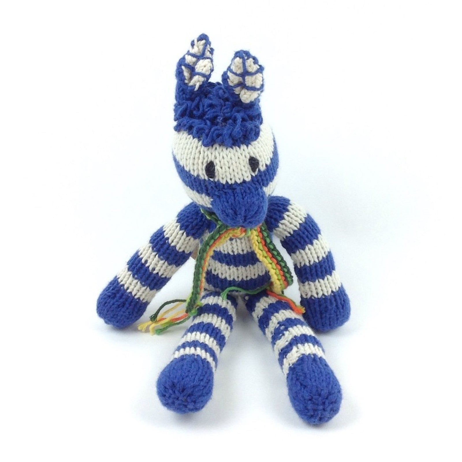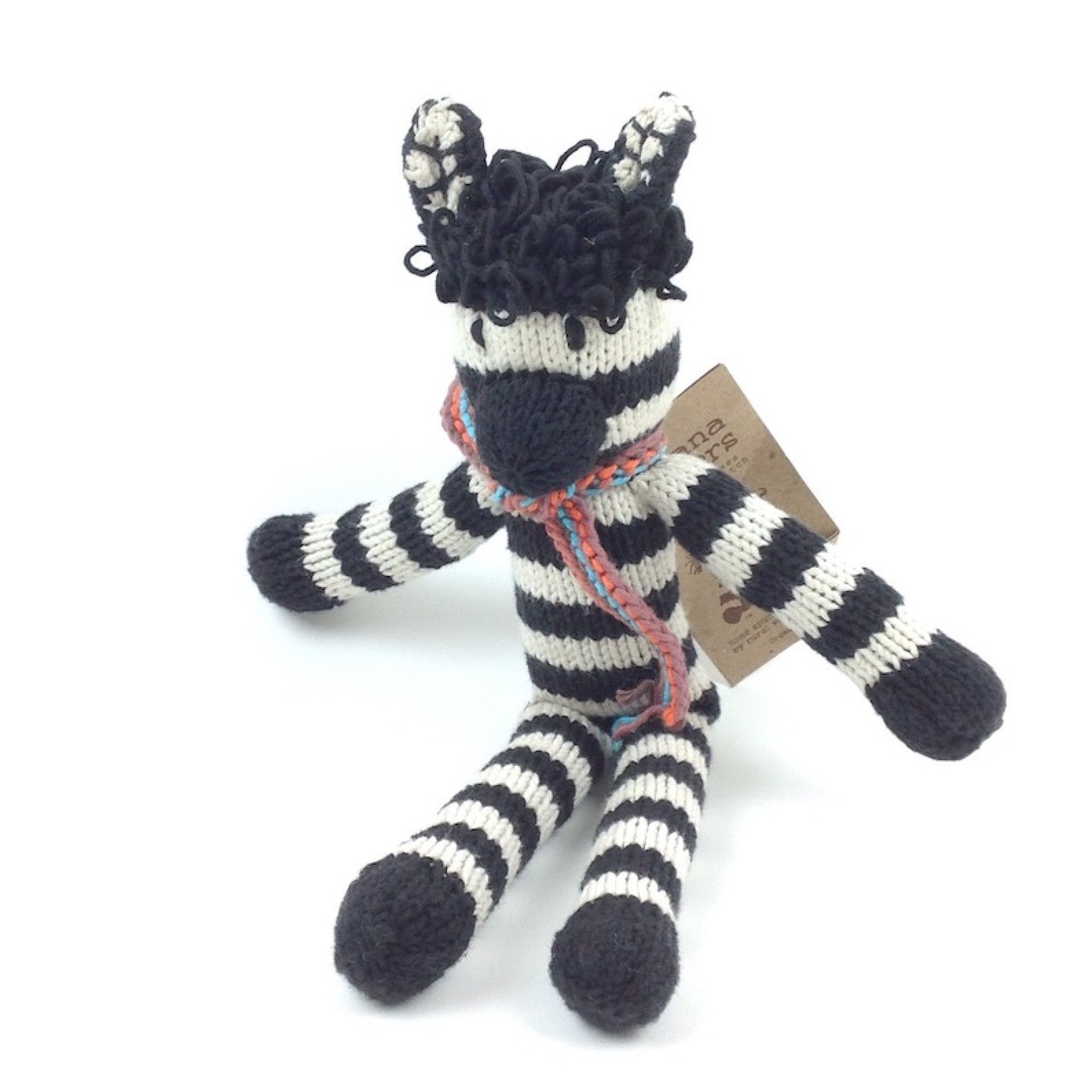 Handstickat mjukisdjur i form av en randig åsna från "Kenana women's group" i Rift Valley provinsen i Kenya. Detta är en Fair-Trade-organisation som startats för att kvinnor på landsbygden ska kunna tjäna ett levebröd med hjälp av sin skicklighet i att spinna och sticka.