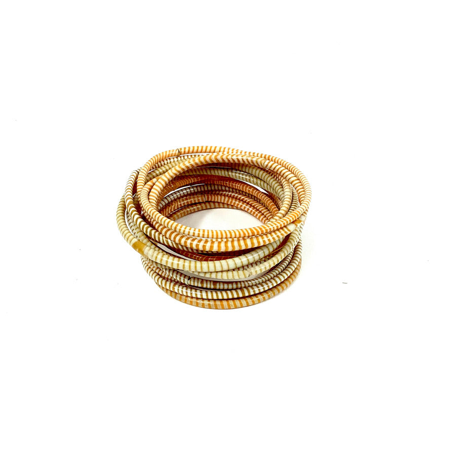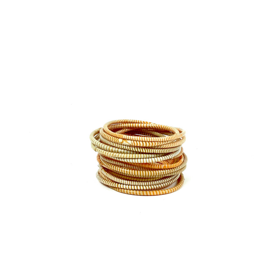 Dessa lekfulla och färgglada armband är tillverkade av återvunna flip-flop sandaler i Mali. Varje armband är unikt och bär med sig en egen historia av återvinning och kreativitet. Armbanden är perfekta för både barn och vuxna och ger en trendig och färgstark touch till dina outfits. De är särskilt populära bland de som är unga i själen, och flera kan staplas tillsammans på armen (eller varför inte ankeln?) för en stilfull och eklektisk look.