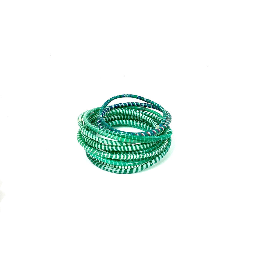 Dessa lekfulla och färgglada armband är tillverkade av återvunna flip-flop sandaler i Mali. Varje armband är unikt och bär med sig en egen historia av återvinning och kreativitet. Armbanden är perfekta för både barn och vuxna och ger en trendig och färgstark touch till dina outfits. De är särskilt populära bland de som är unga i själen, och flera kan staplas tillsammans på armen (eller varför inte ankeln?) för en stilfull och eklektisk look.