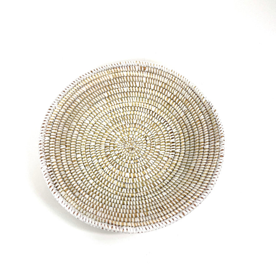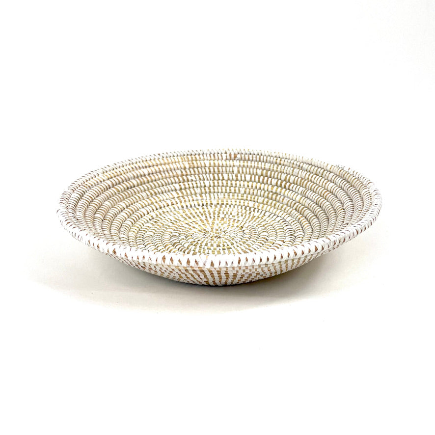 OM: Dessa fruktkorgar tillverkas för hand av en grupp som kallas "Wolof women's group" i Ngaye i den norra delen av Senegal. Tekniken att väva korgar har gått i arv i generationer från mödrar till deras barn. Genom att köpa dessa korgar hjälper du kvinnorna och deras familjer. Korgarna flätas av lokalt växande bredkaveldun, Typha latifolia, och återvunnen plast.