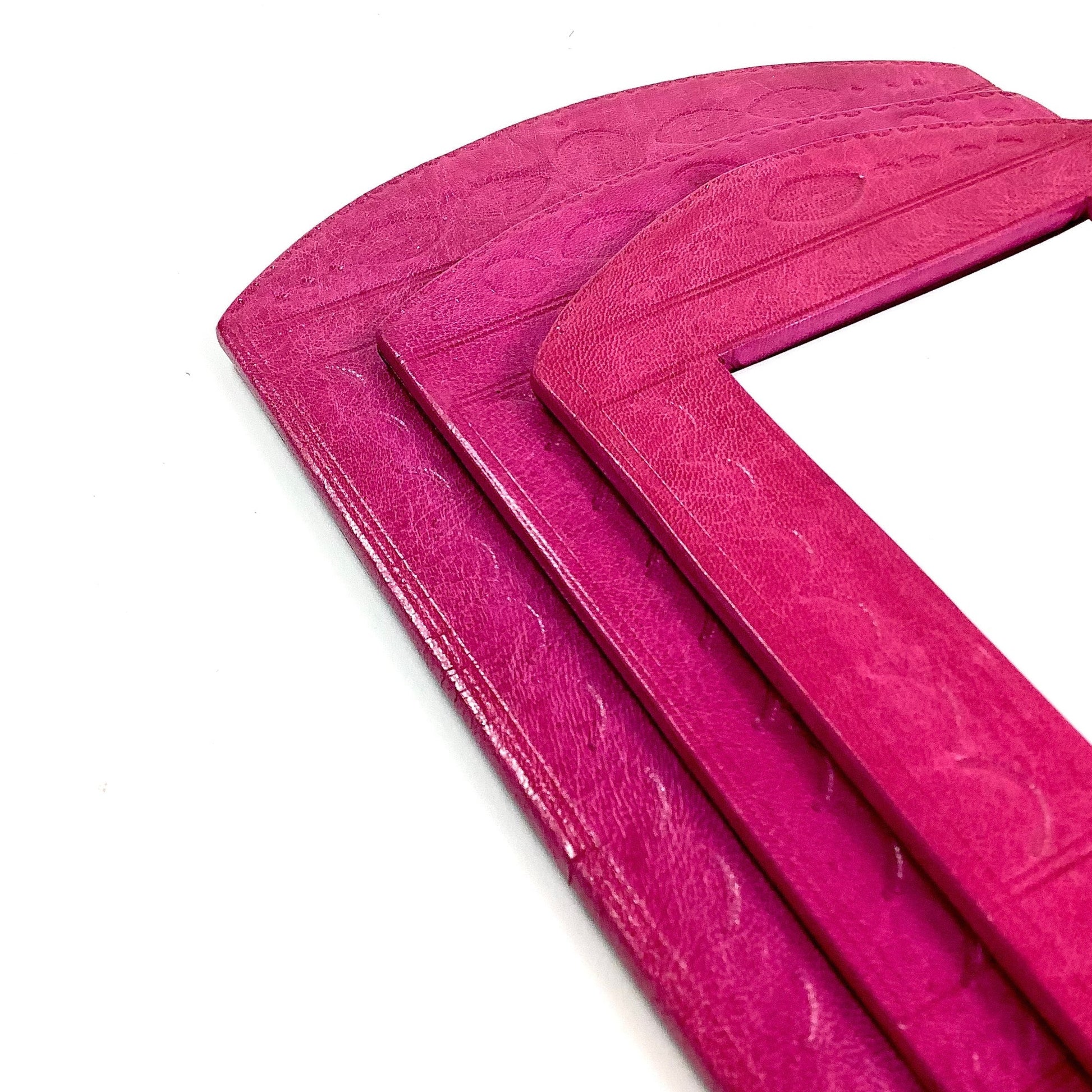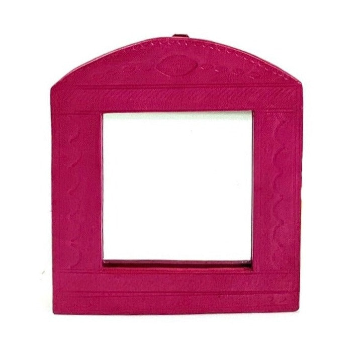OM: Spegel med ram klädd i Getskinn, handgjord av tuareger i centrala Sahara. Tuaregerna kallas även det blå folket.