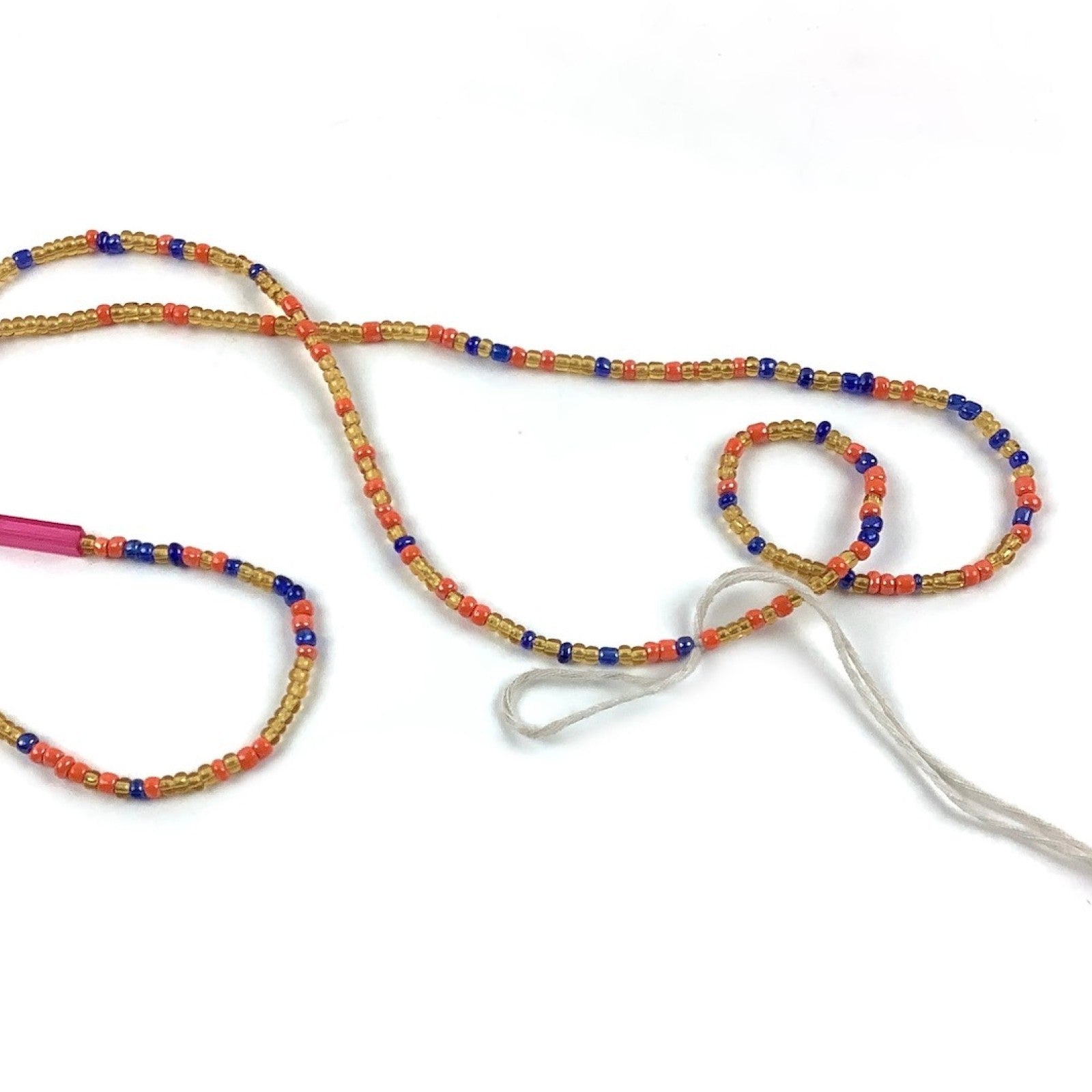 OBSERVERA: Midjepärlorna kommer med lite extra snöre för att kunna knytas.
