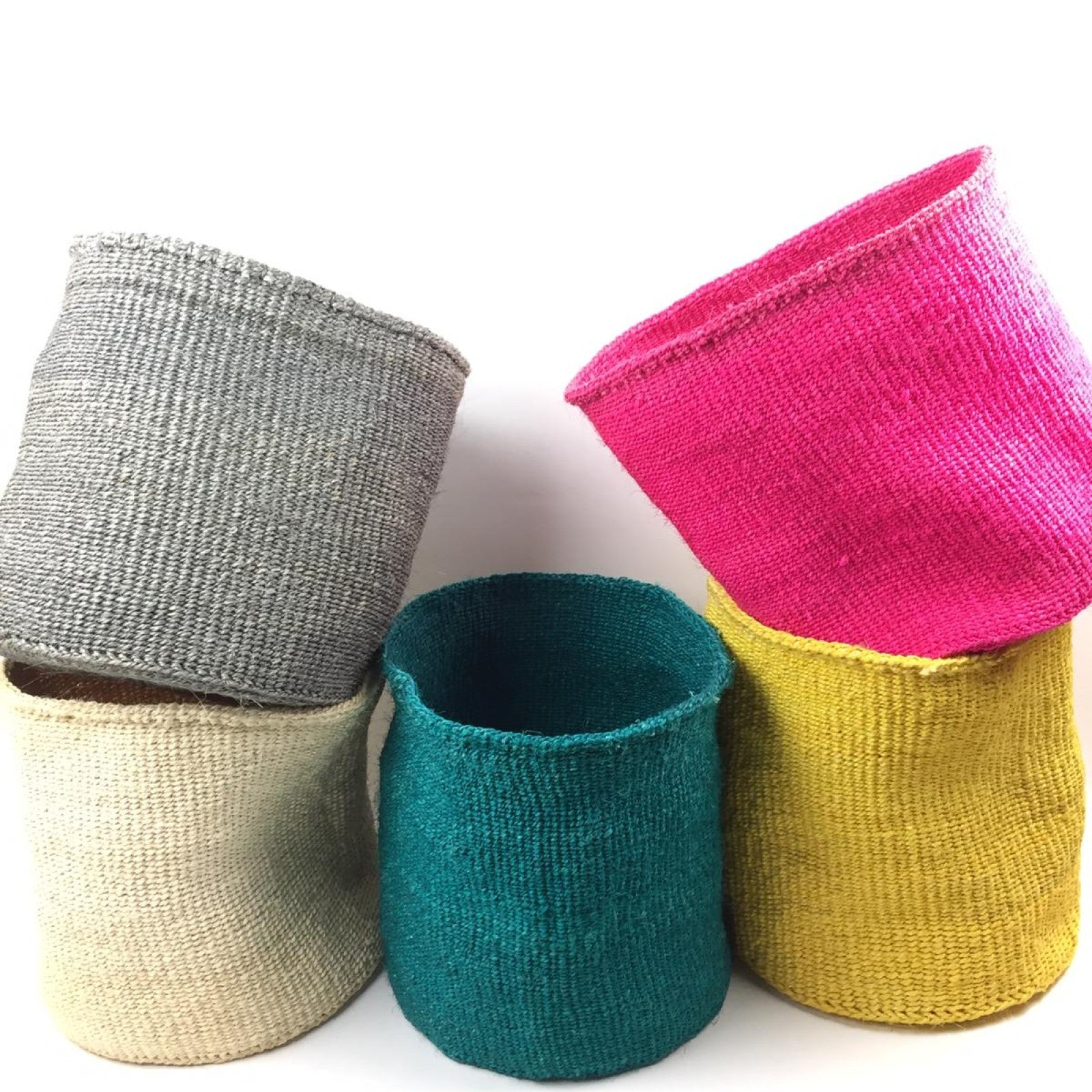 Dessa fina korgar, perfekta till förvaring, tillverkas för hand av de 25 kvinnorna i Akamba Women’s self help group. Vi träffade på dem under vår första resa till Kikoi, South Eastern County i Kenya 2011 och vi säljer fortfarande dessas fina produkter. Korgarna är gjorda av sisal, växtfiber från agaveplantan.