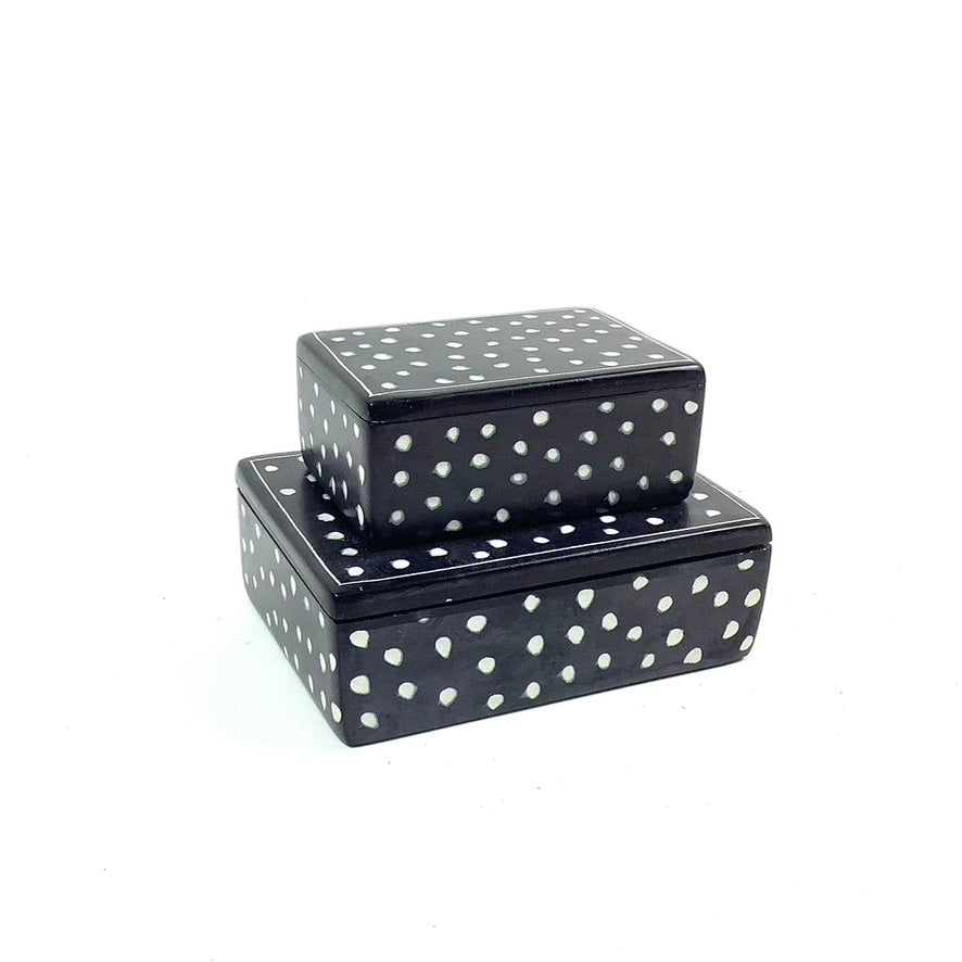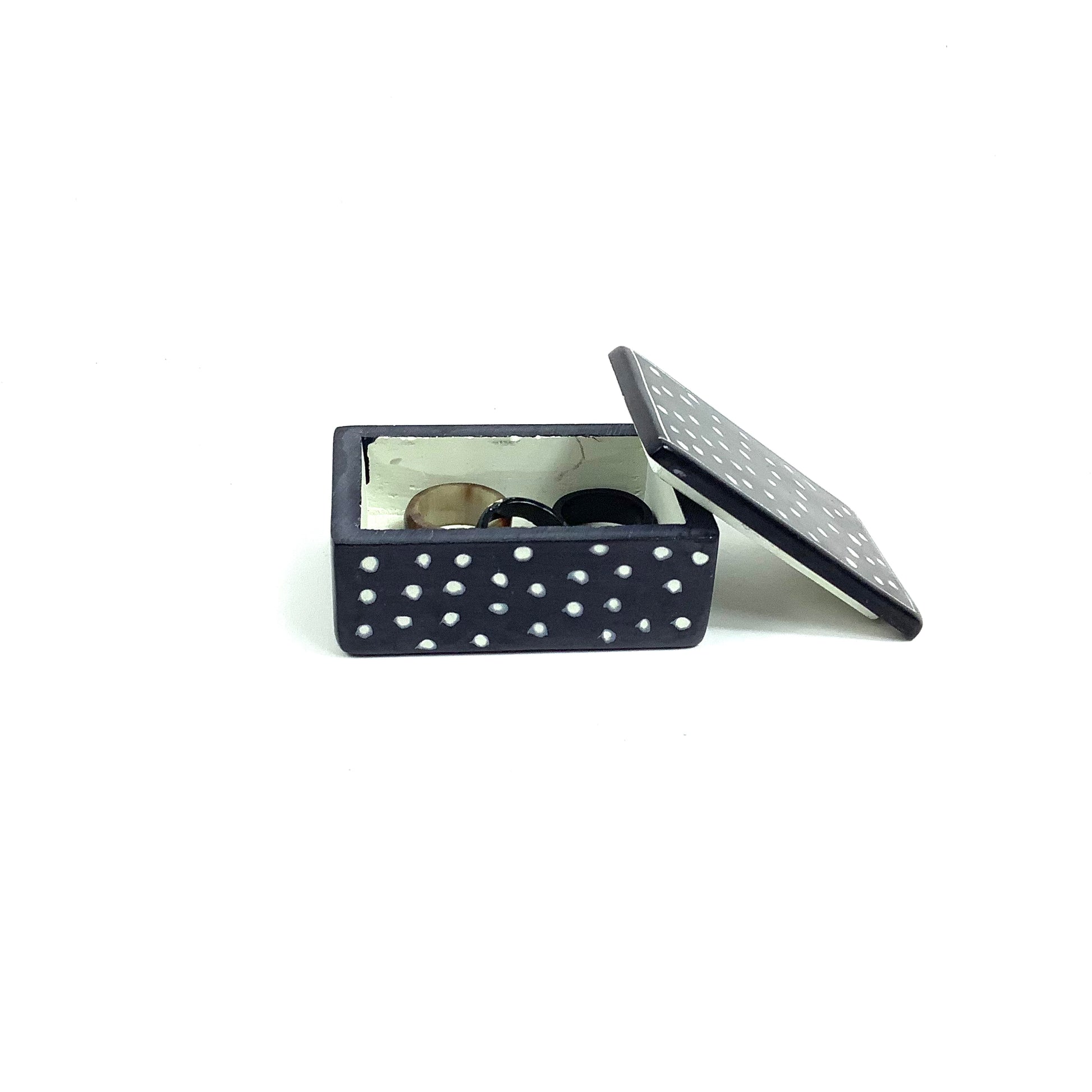 Fina smyckeskrin av täljsten tillverkade av skickliga konsthantverkare i Kenya. Askarna snidas och målas för hand. Täljsten känns otroligt mjukt och lent när man håller det i handen. En perfekt, miljövänlig present!