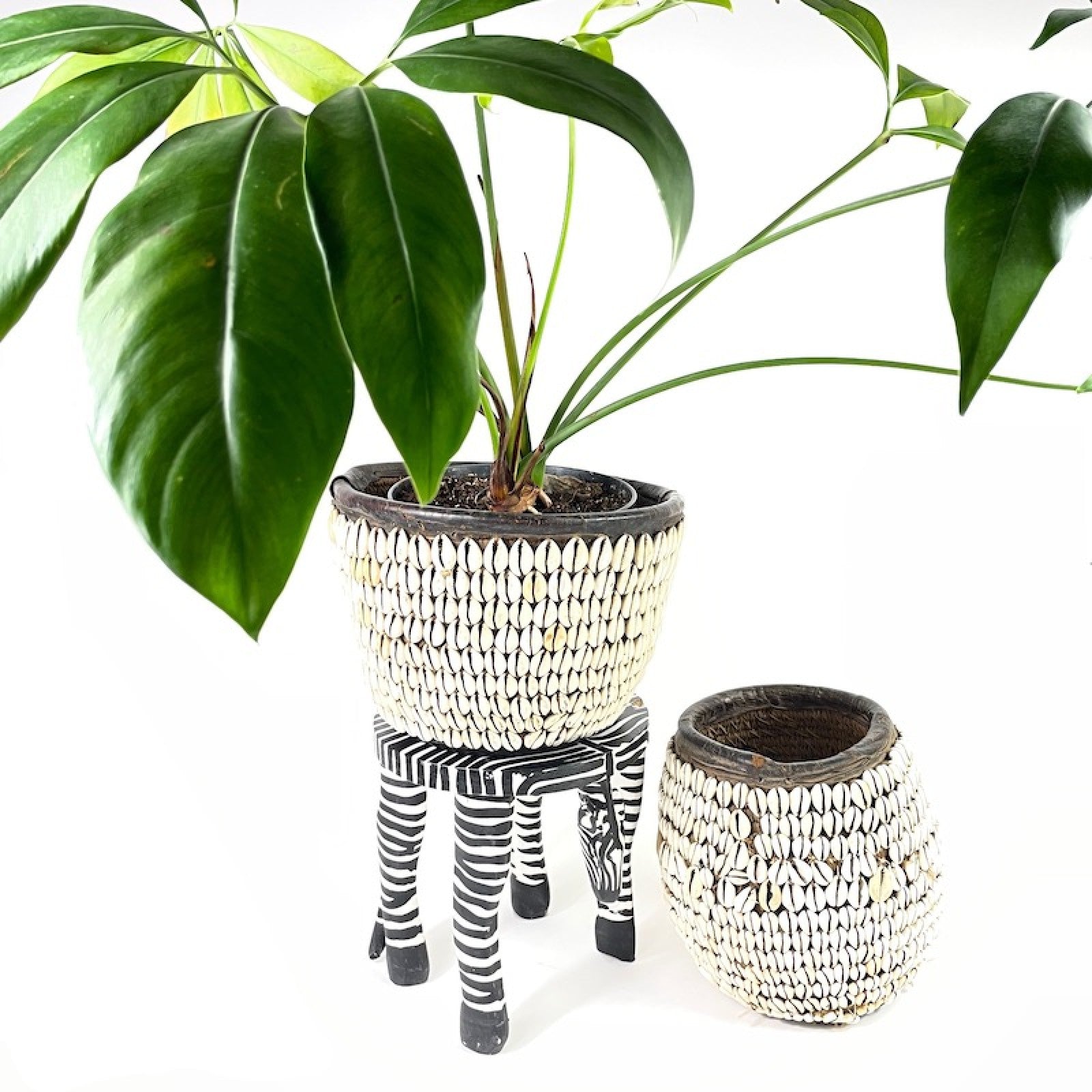 Material: snäckskal, palmblad, läder, snöre