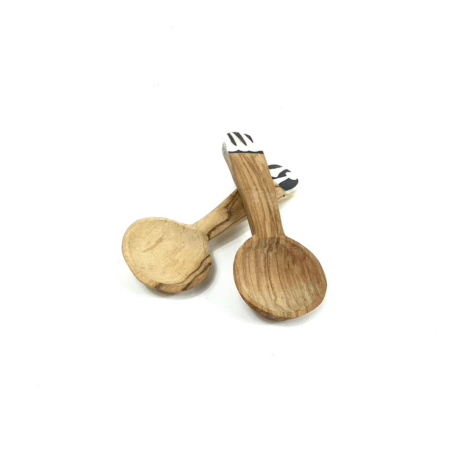 Liten sockersked av olivträ från Kenya. Besticken har snidats för hand.