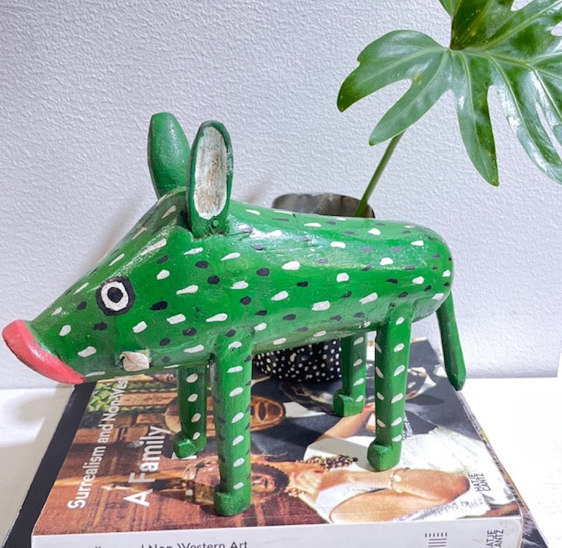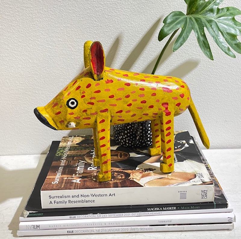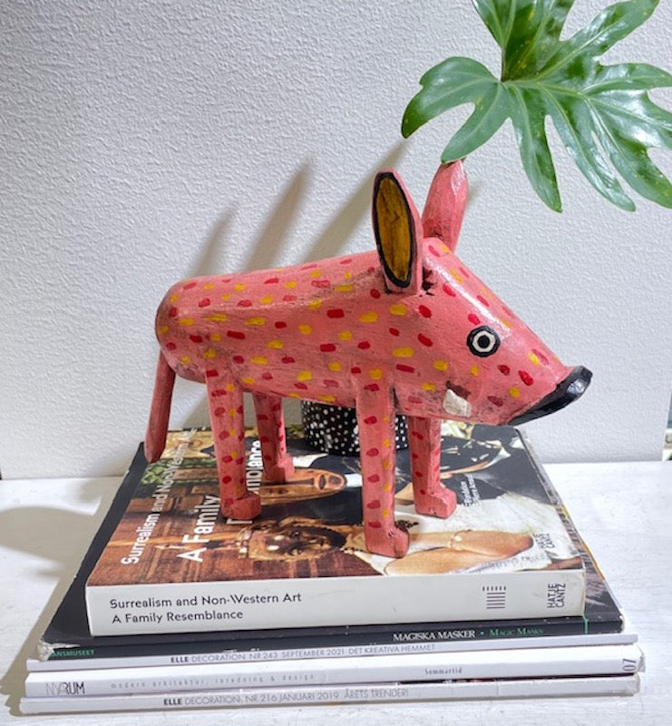 OM: En underbart och lekfull träskulptur i form av ett vildsvin. En unik inredningsdetalj.